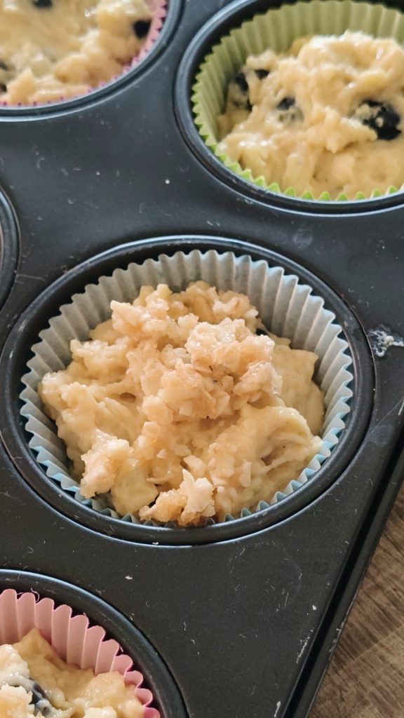 These muffins combine the lightness of the batter with the natural sweetness of the blueberries and the golden crust of the crumble, captivating from the first bite.
