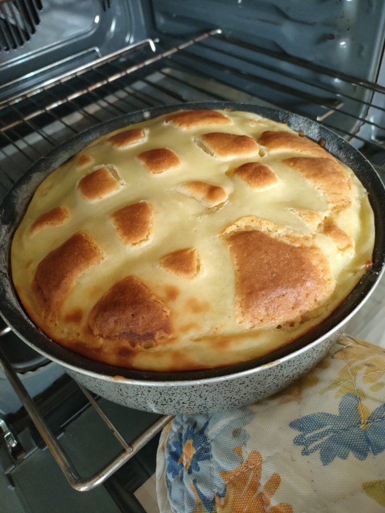 The soft quilt cake with lemon custard, also known as duvet cake, owes its name to the appearance it takes on during baking thanks to the custard spread on the cake before baking.