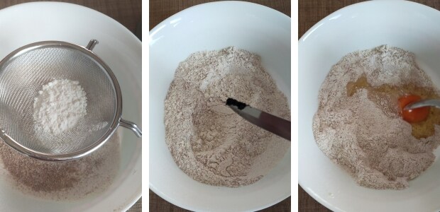 – Pour the already sifted flour into the bowl, add the baking powder, vanilla, and egg; mix.