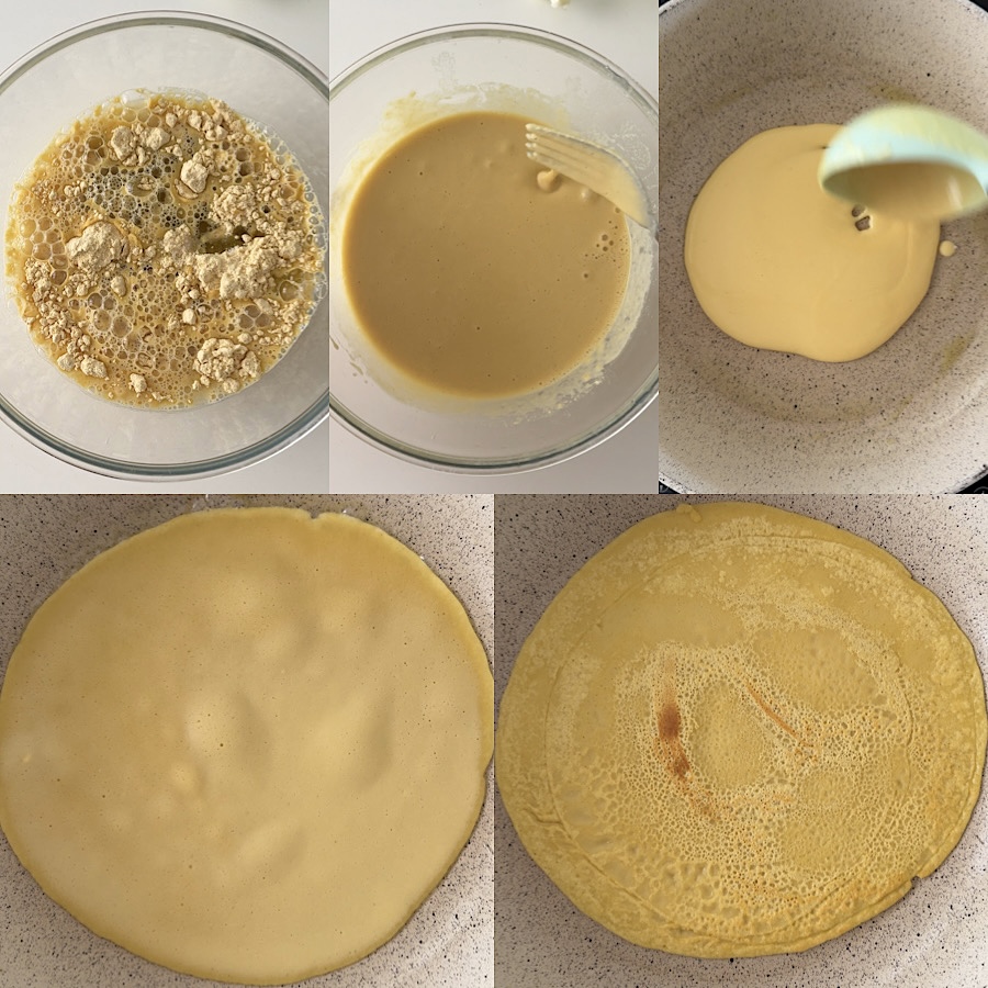 The cooking of both types of chickpea flatbreads is the same: lightly grease a non-stick pan with oil and let it heat, pour a ladle of batter and rotate the pan to distribute it evenly, let the chickpea flour flatbreads cook for 3/4 minutes per side, and those with chickpeas for about 4/5 minutes per side.