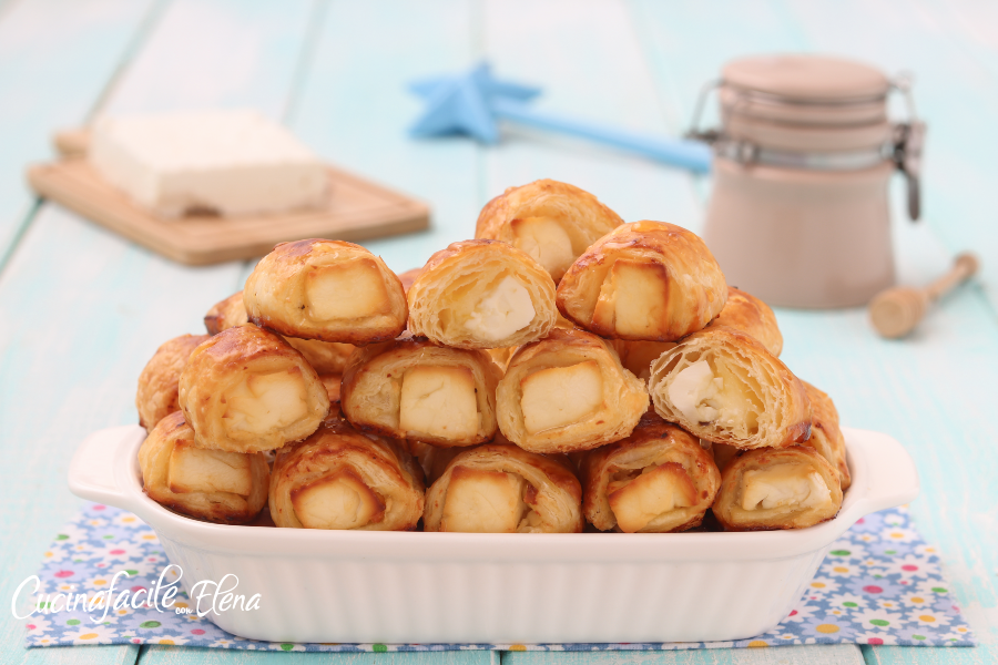 Feta and honey savory snacks are quick and delicious puff pastry treats, very tasty and savory puffs. I had some feta to consume and a roll of puff pastry about to expire, and I made these delightful mini rustic bites for an aperitif, which were literally devoured. Feta and honey savory snacks are perfect not only for aperitifs but also for a party, buffet, or as an appetizer. They are a cross between sweet and savory, the honey makes the filling more delicious, soft, and creamy, and it pairs perfectly with the Greek cheese. Try them, you won’t stop at just one!