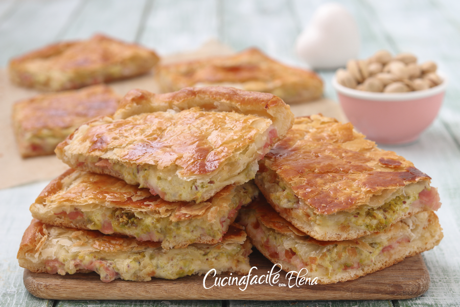 The Parisian pizza with pistachio and mortadella is a truly exceptional savory pie. You all know the classic Parisian pizza, made with a pizza dough base, filled with tomato, cooked ham, and mozzarella, and covered with a puff pastry sheet, I have made many versions and now I wanted to make it white, with pistachios, mortadella, melty and creamy cheese. A delicious bomb! The Parisian pizza with pistachio and mortadella is soft, fragrant, creamy and melty, you prepare it in just 10 minutes, it is a perfect quick dinner and fridge-clearer recipe, also perfect for a party, a buffet, or an aperitif, in any case, it will literally be a hit!