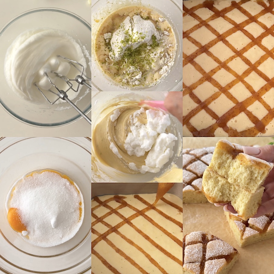 The quilt cake is a fragrant jam cake, soft and creamy, with a water-based batter without butter, milk or other dairy products (thus perfect for lactose intolerants). The name of this cake is due to its “appearance,” indeed, the surface of this cake resembles a soft and fluffy quilt, where the “stitches” are made of jam! Perfect for breakfast, a snack, or at the end of a meal, the quilt cake will conquer everyone, young and old, it is very soft but the jam does not sink during baking, just one bite to fall in love!
