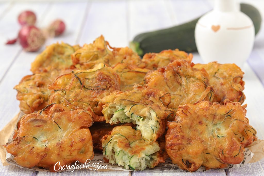 The zucchini and onion fritters are delicious savory vegetarian fritters that can be made in just a few minutes without even pre-boiling the zucchini. Crunchy, soft, and extremely tasty, zucchini and onion fritters are prepared in just 10 minutes. They are ideal as an appetizer or side dish, but also as a main course, delicious even cold, perfect for an aperitif. Be sure to make plenty because they are irresistible, and I’m sure you won’t be able to bring them all to the table 😀