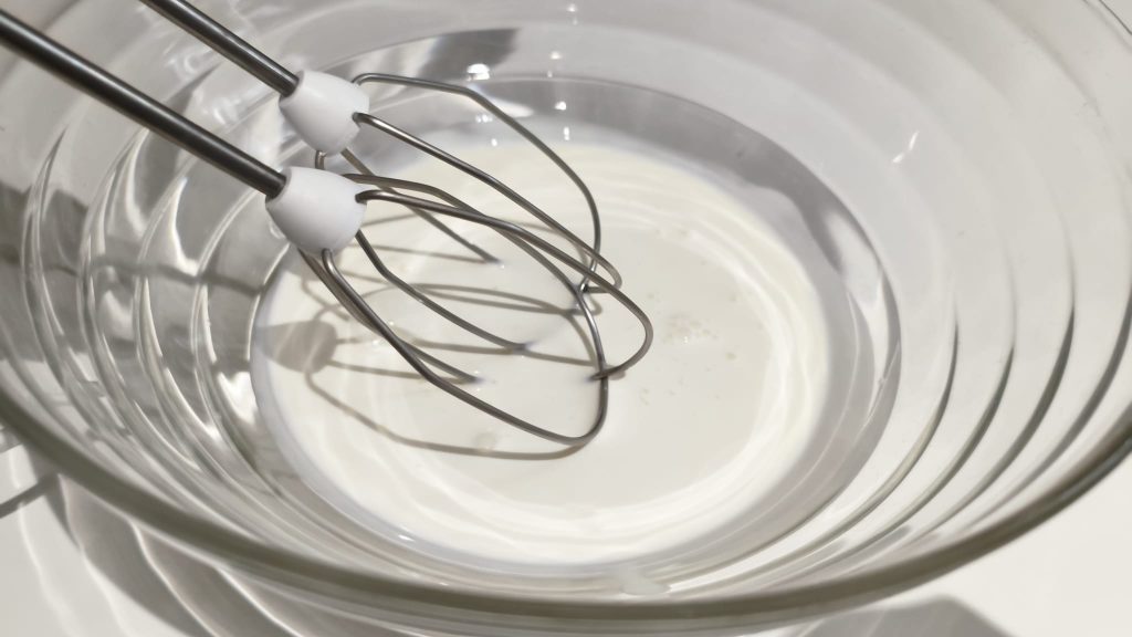 • Fold the whipped cream into the pastry cream gently from the bottom up.