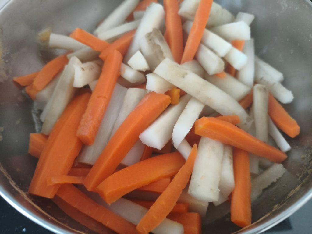 Preparing the bitter greens and curry carrots is very simple. Clean the bitter greens and carrots.