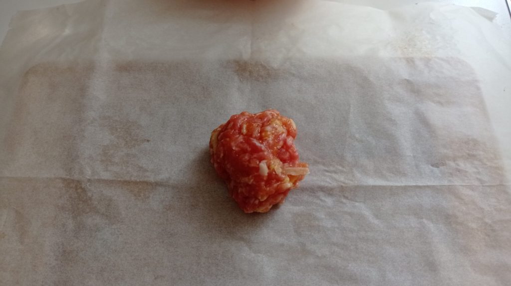 In a large bowl combine: ground beef, eggs, Parmesan, salt and the squeezed sandwich bread.