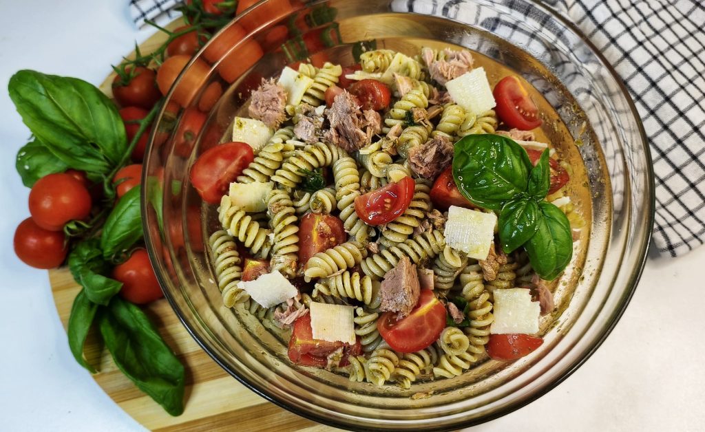 Do you know when you crave a fresh, quick, and super tasty dish that solves your lunch or dinner without stress? I have my salvation: cold pasta with pesto, cherry tomatoes, and tuna.