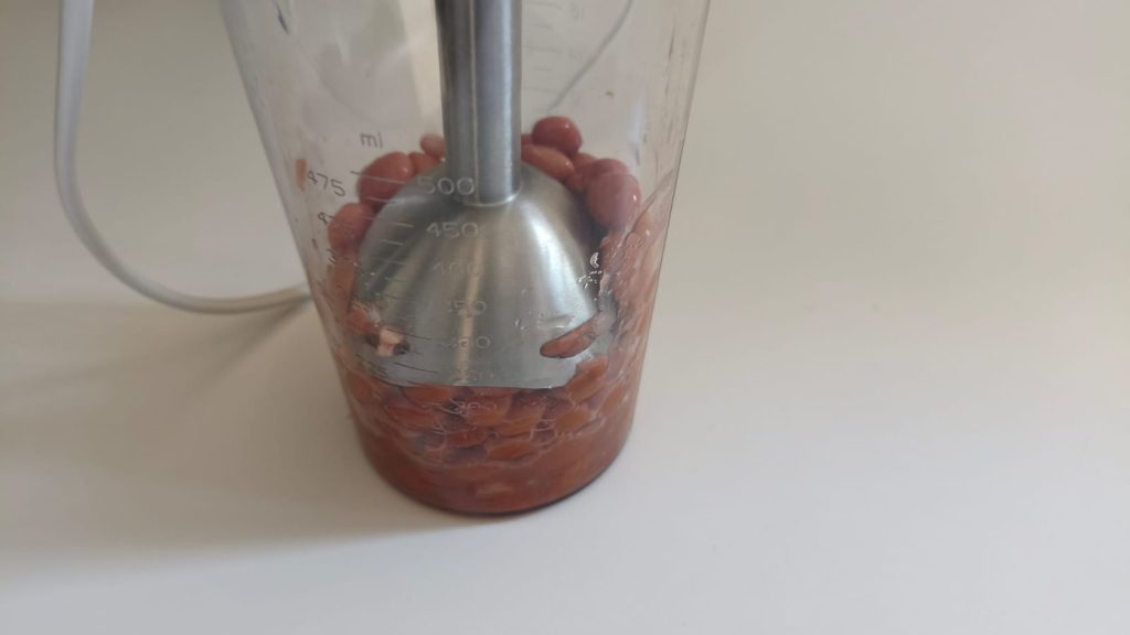 Meanwhile, blend half of the beans and add them to the pan with the tomato puree and let it season for two minutes