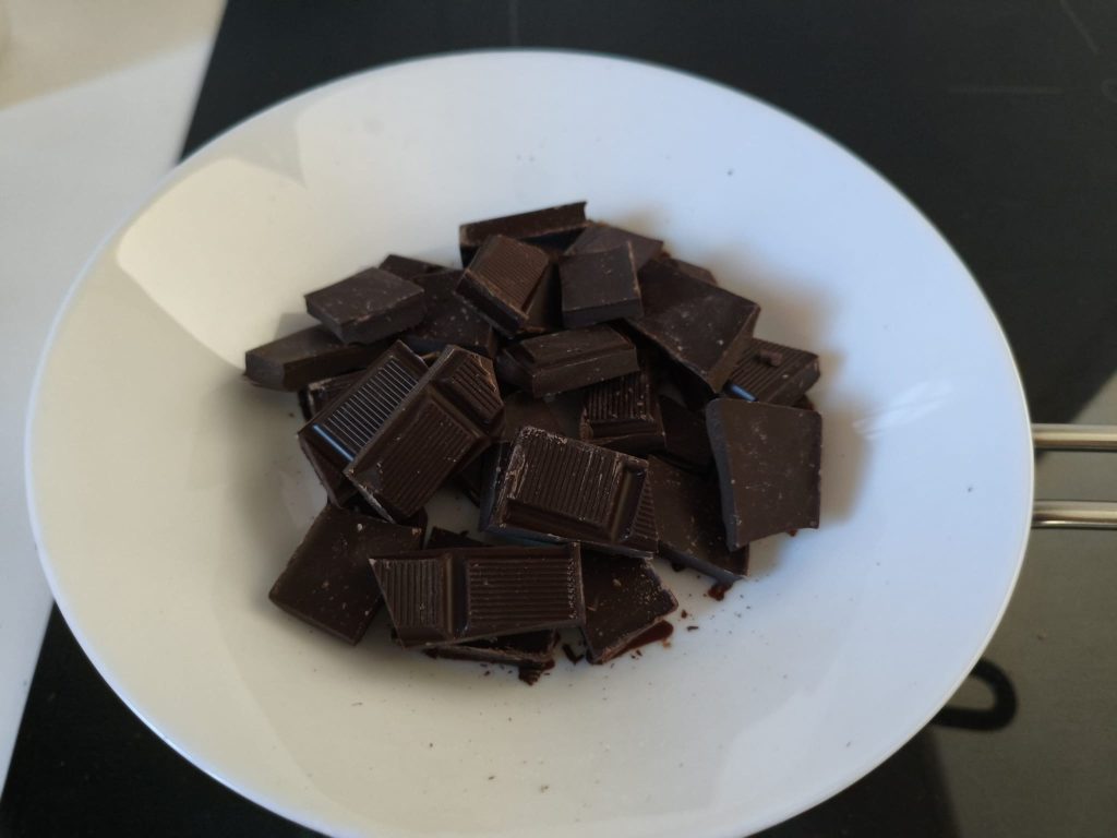 Melt the chocolate: meanwhile, break the dark chocolate into pieces and melt it using a double boiler, stirring until smooth.