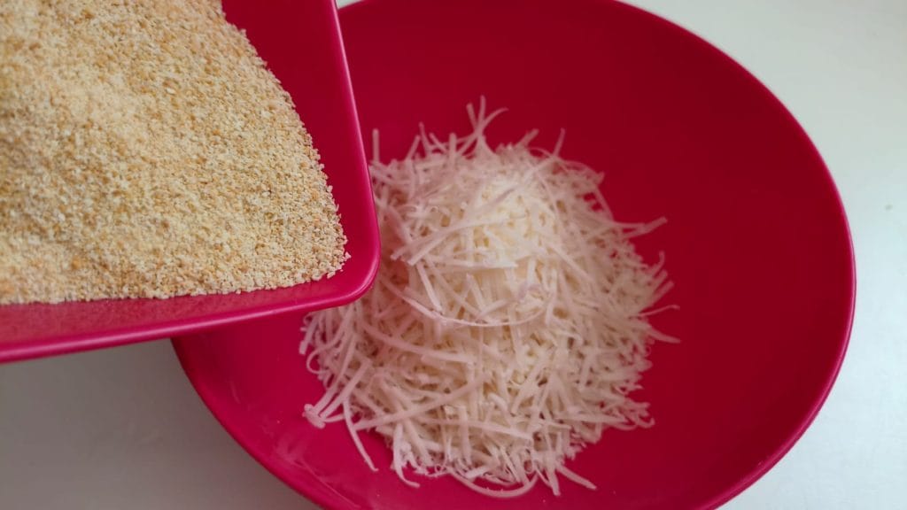 Meanwhile, in a bowl, combine the parmesan with breadcrumbs, oil, and parsley. Mix well.