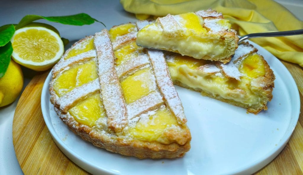 The lemon cream, on the other hand, is soft and enveloping, with just the right balance between sweetness and acidity. It’s made with eggs, sugar, and milk, with the addition of fresh lemon juice and it cooks gently until it becomes a smooth and silky cream. Once assembled, the tart goes in the oven and in a few minutes your kitchen will be filled with a delicious smell.