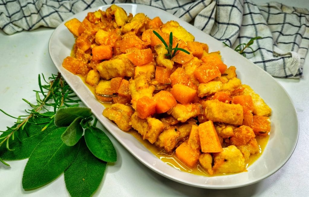 This autumn main course is also ideal for those who want to eat light without sacrificing taste. The chicken with pumpkin and onion is a winning combination, and I assure you that kids love it too!