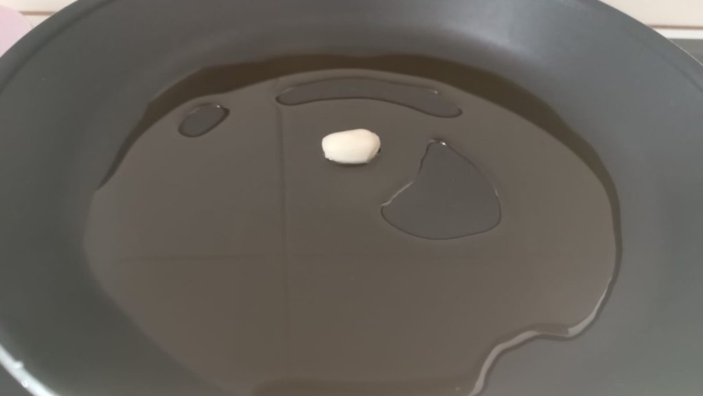 • Bring a pan to heat with a splash of oil and sauté a garlic clove