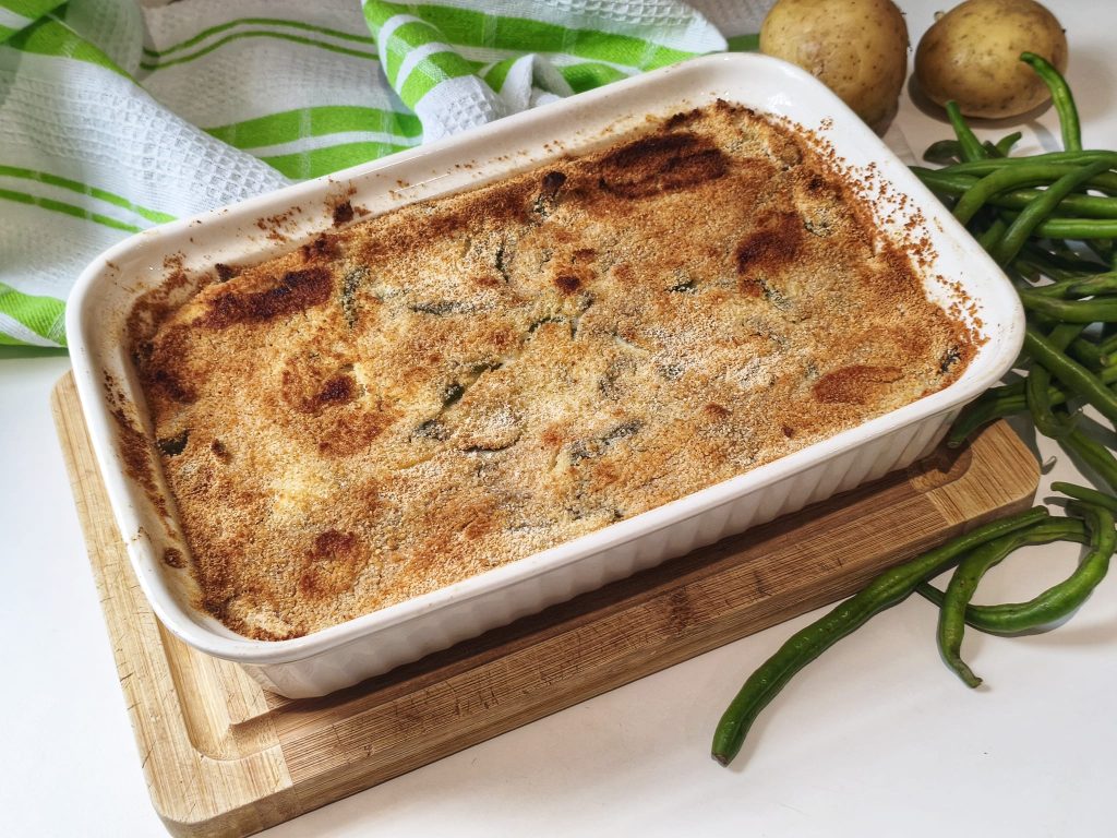 If you’re looking for ideas for cooking green beans, recipes with potatoes and ricotta, or casseroles without eggs, this is a recipe to save immediately. I’ll explain everything step by step, so you can make it too in just a few steps!