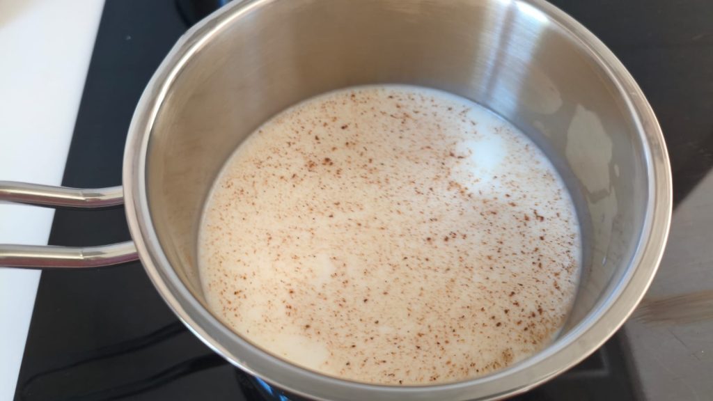 Meanwhile, prepare the béchamel: in a saucepan, heat the milk along with nutmeg and salt.