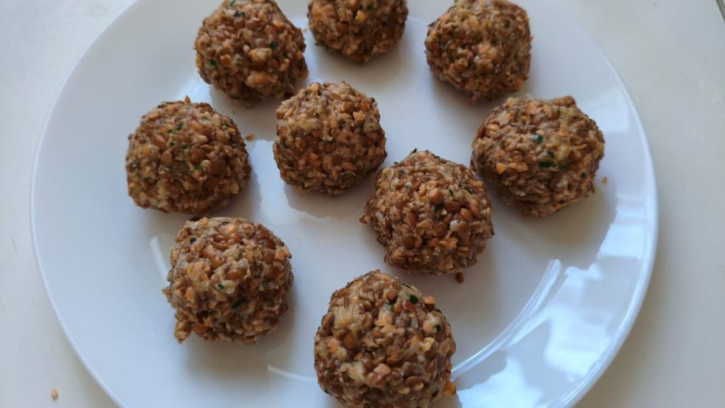 Scoop small portions of the mixture and shape compact balls. If the mixture is too soft, add a bit more breadcrumbs.