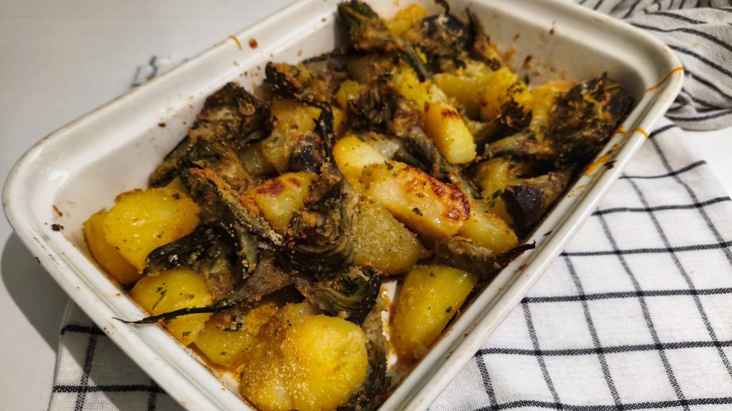 This baked artichoke and potato recipe is perfect for any occasion: a family lunch, a delicious side dish for a special dinner, or a vegetarian main dish that never disappoints.