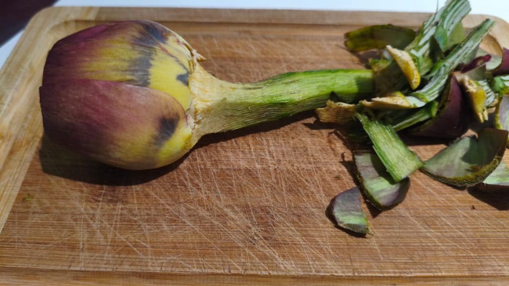 • To prepare the potato and artichoke side dish, start by cleaning the artichokes and removing the outer leaves, which are the toughest, and the tips.