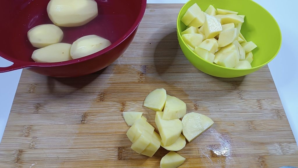 • Meanwhile, peel and wash the potatoes and cut them into chunks.
