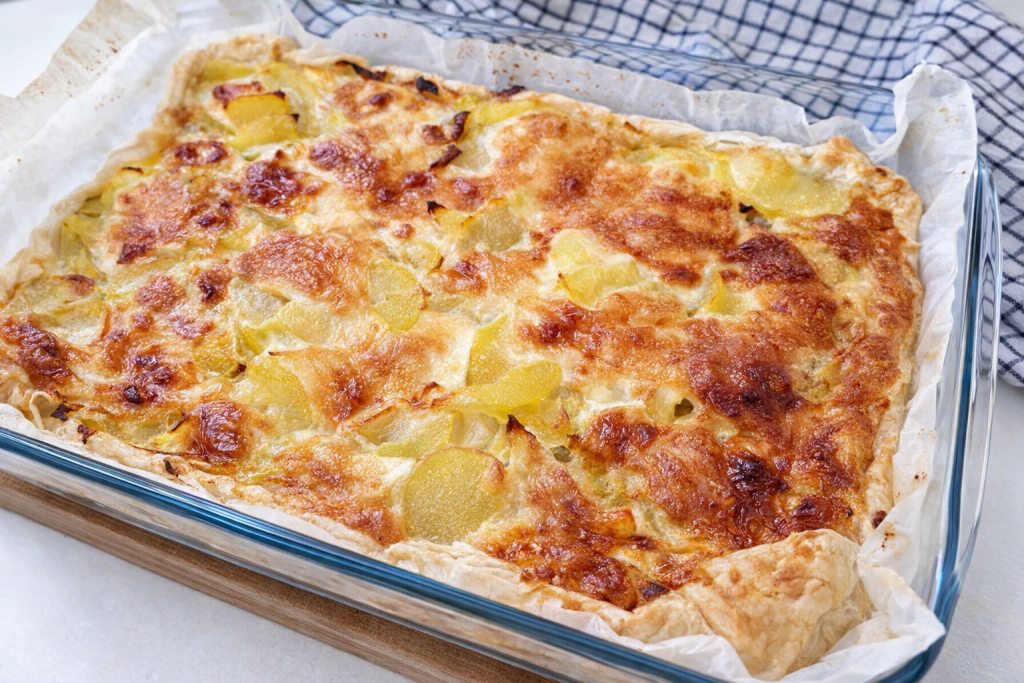 I had fresh leeks from my parents’ garden, those fragrant tender ones that seem to say “use me well.” I didn’t feel like complicating my life, nor did I want the usual soup which, honestly, I don’t even like that much. So I opened the fridge, saw a roll of puff pastry, I had a few potatoes at home… and the idea clicked: a simple, creamy and super comforting tart, perfect for dinner but also to take to work the next day.