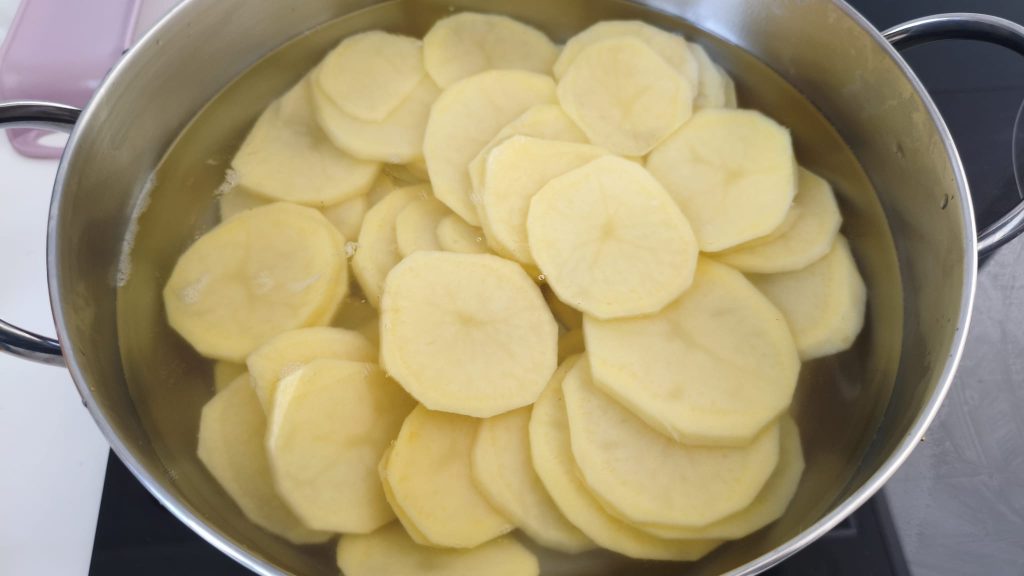 Peel the potatoes, slice them into rounds and boil until tender.