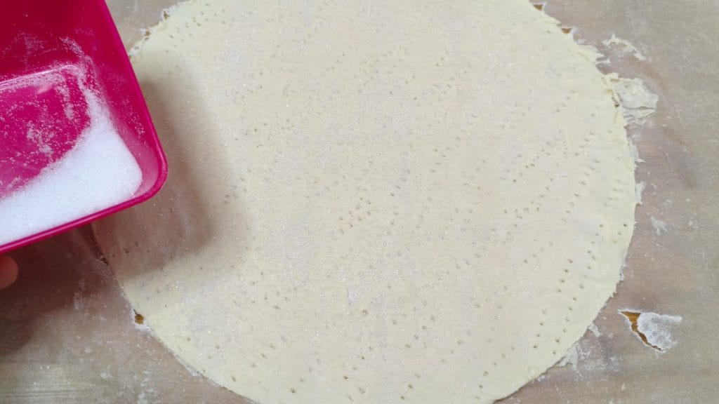 Sprinkle with 0.5 oz of sugar and place it on a baking sheet covered with parchment paper.