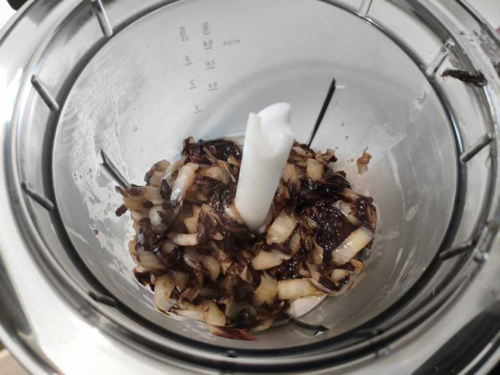 Blend the cooked radicchio until smooth. Add the ricotta and mix well to obtain a creamy and velvety sauce. Season with salt and, if you like, pepper.