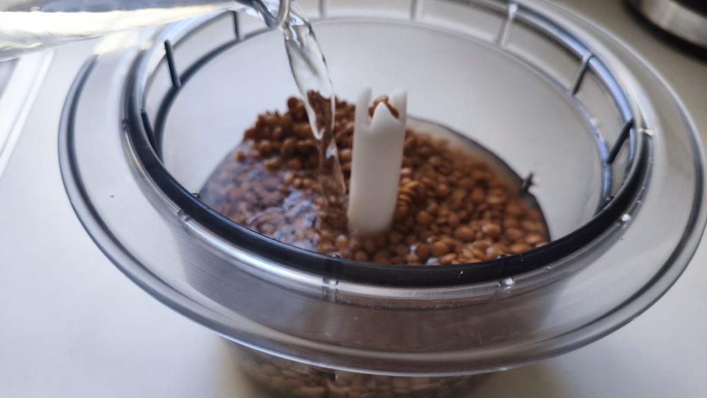 Transfer the lentils to a blender with the water and blend until you obtain a thick cream.
