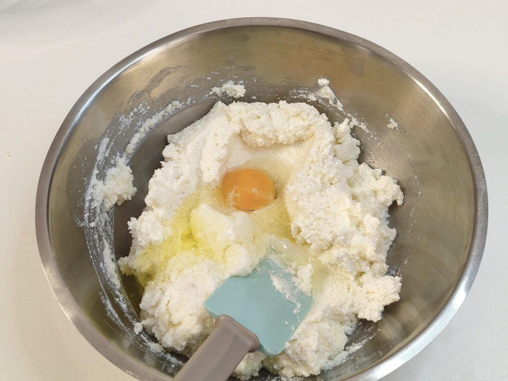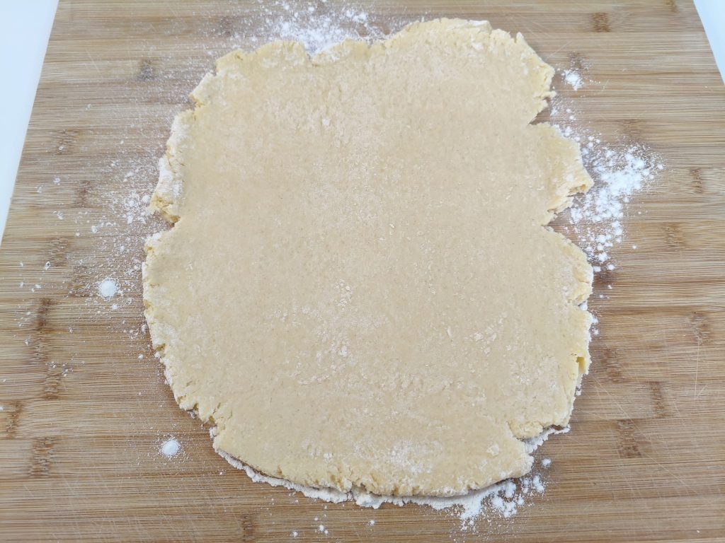 Add the flour and knead until you form a smooth dough. Wrap it in plastic wrap and let it rest in the fridge for at least 30 minutes.