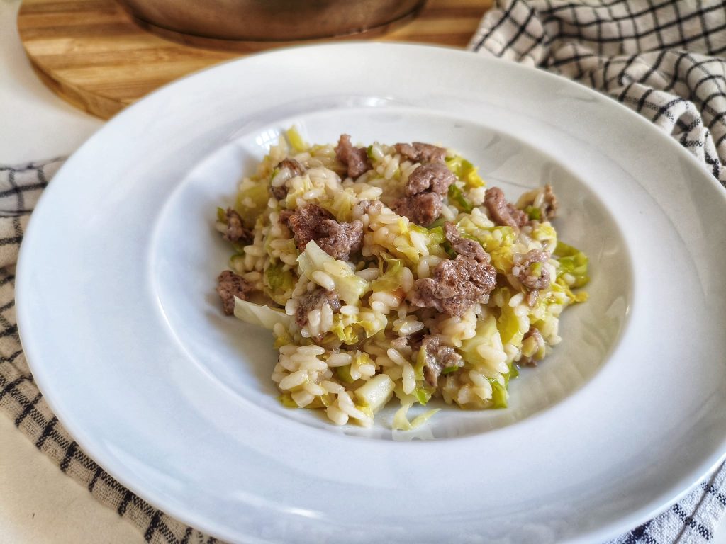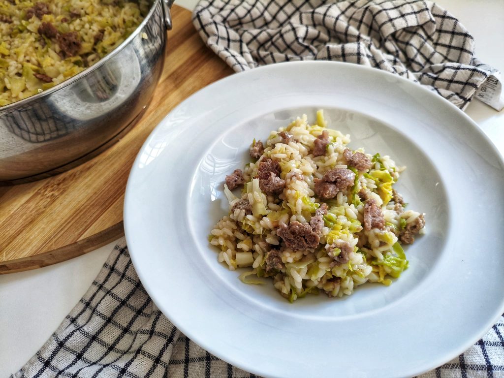 Risotto with sausage and cabbage is perfect for a dinner with friends, a Sunday lunch, or even just to comfort yourself after a long day.