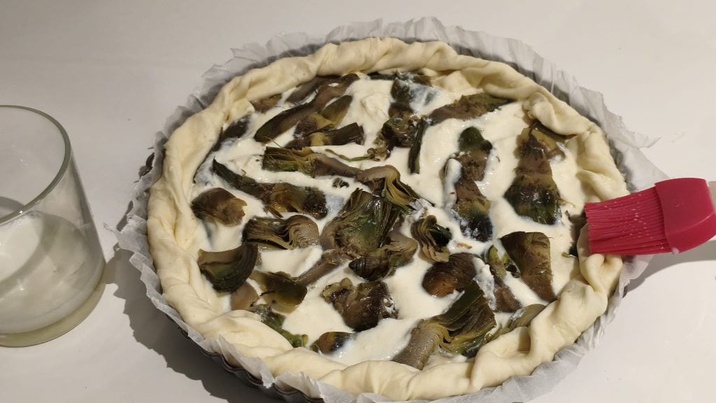 • Add the ricotta filling and the cooked artichokes.