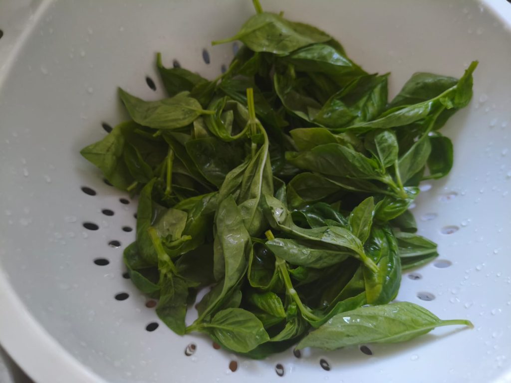 Preparing the basil cream is very simple: Wash the basil leaves, dry them gently, and blend them with oil, salt, and smoked cheese until you get a cream.