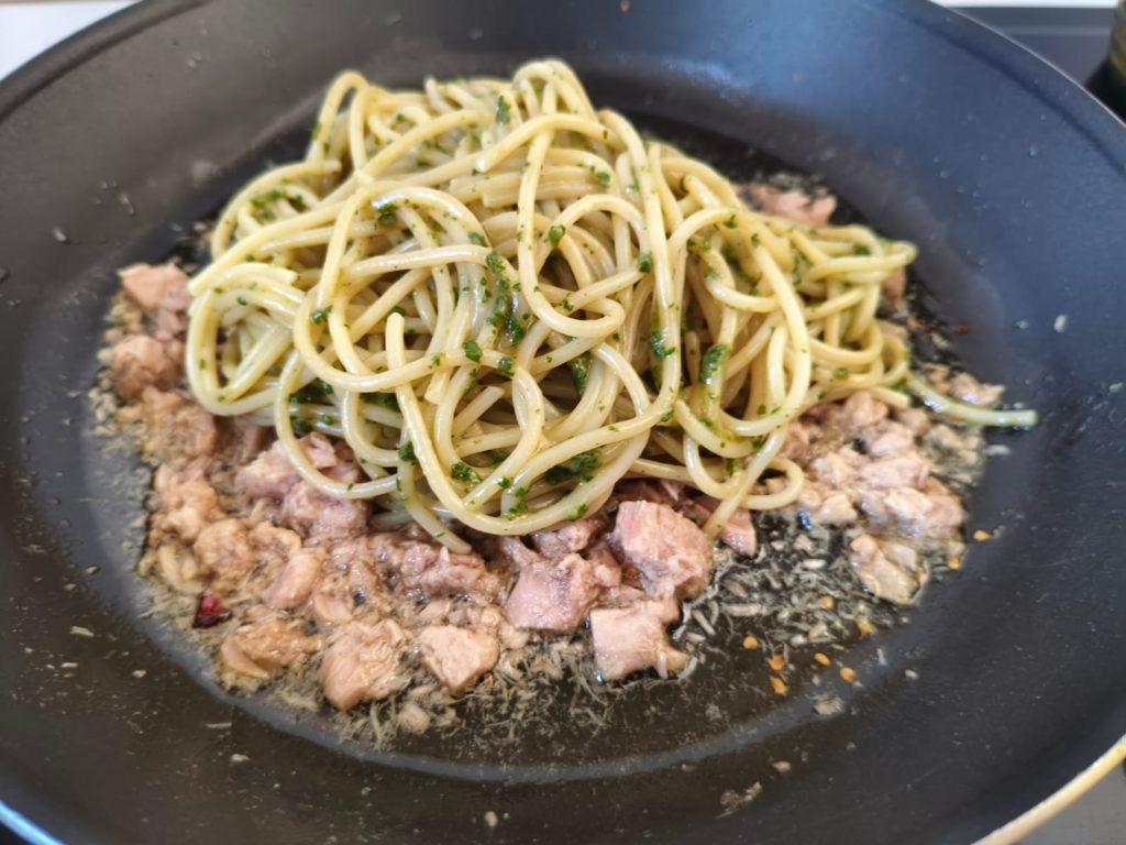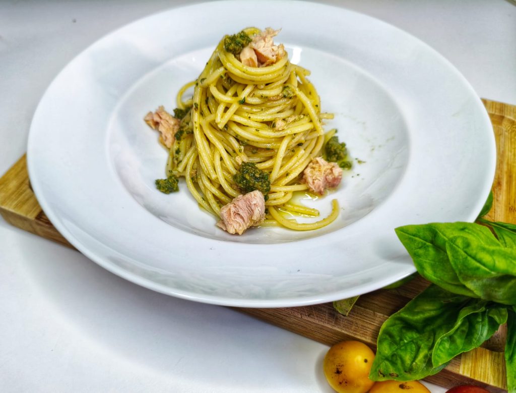 The spaghetti with basil cream and tuna are ready: quick and delicious!😊