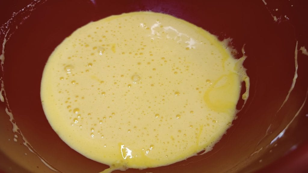 Separate the egg whites from the yolks and beat the whites with the electric whisk until stiff peaks form with 2 tablespoons of sugar