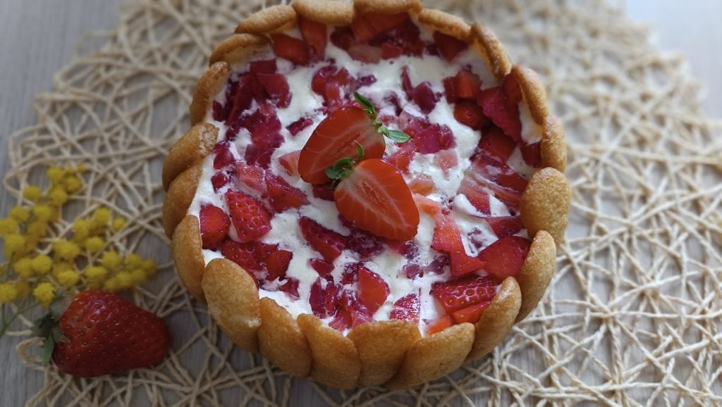 On the cookie base, spread the cream and strawberries and layer by also adding more cookies until the dessert is complete