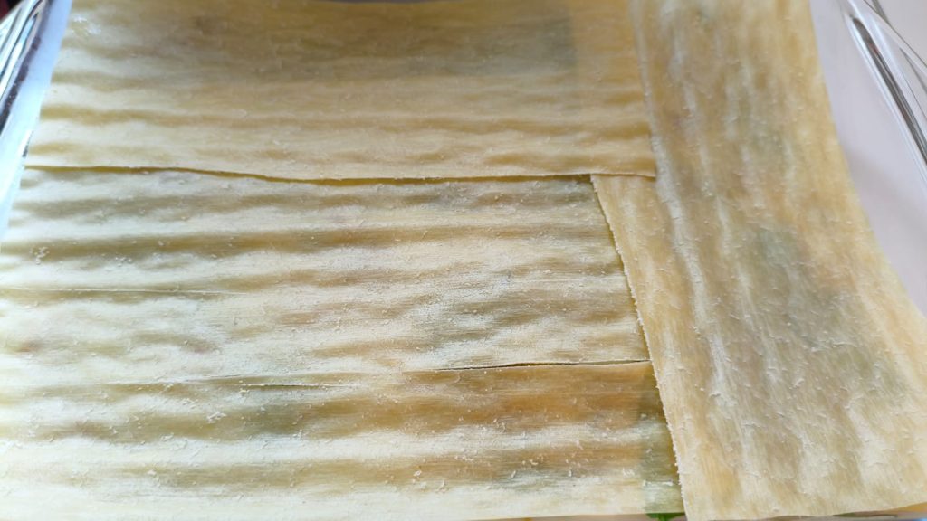 Once ready, we can start assembling our zucchini and sausage lasagna.