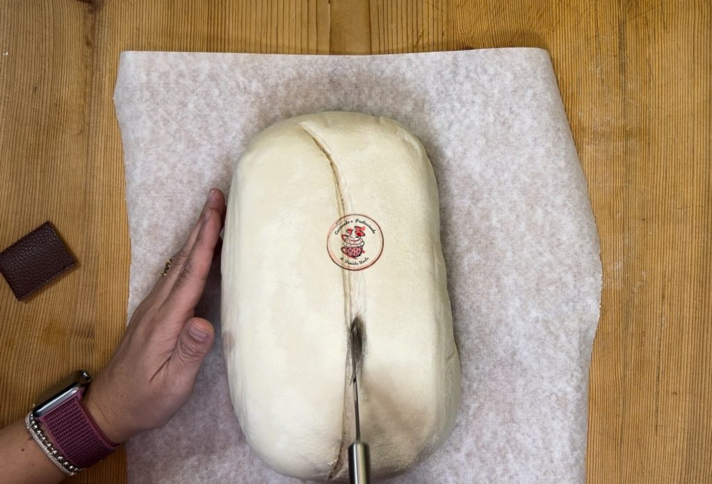 • After the resting time, transfer the dough again onto the work surface and shape it into a loaf.