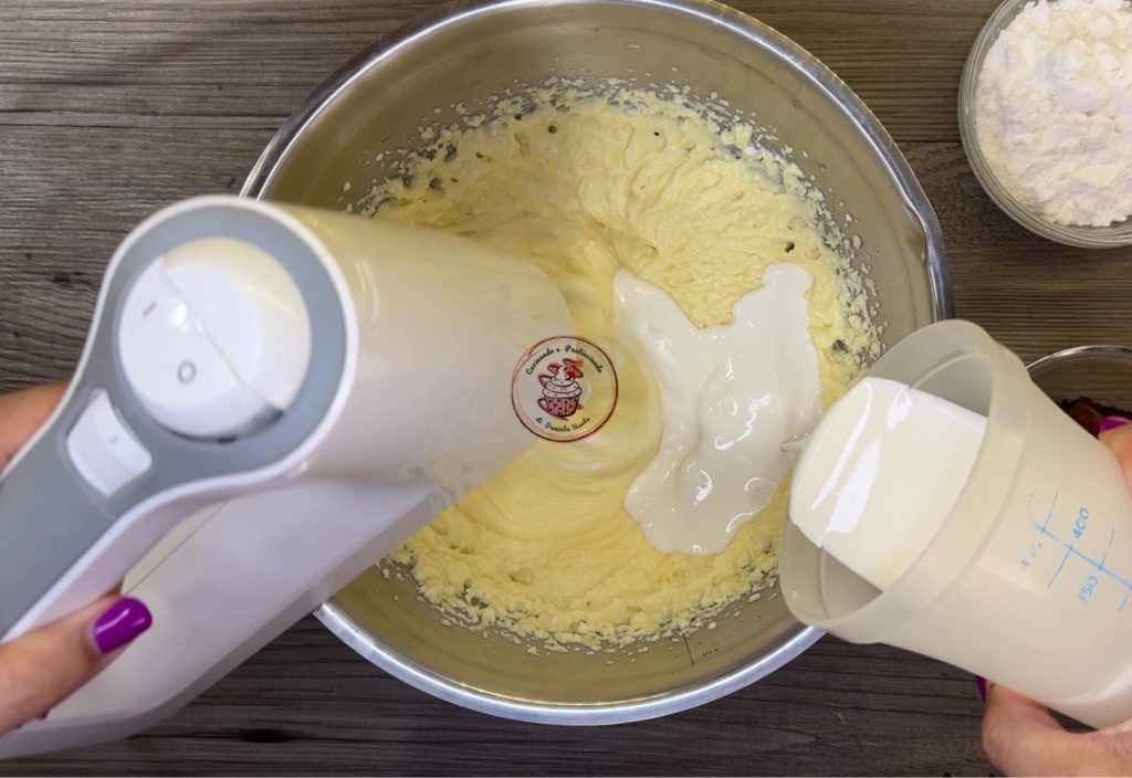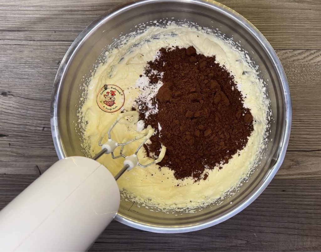 Work with the electric whisk until a smooth cream forms, add the cream and continue working with the electric whisk.
