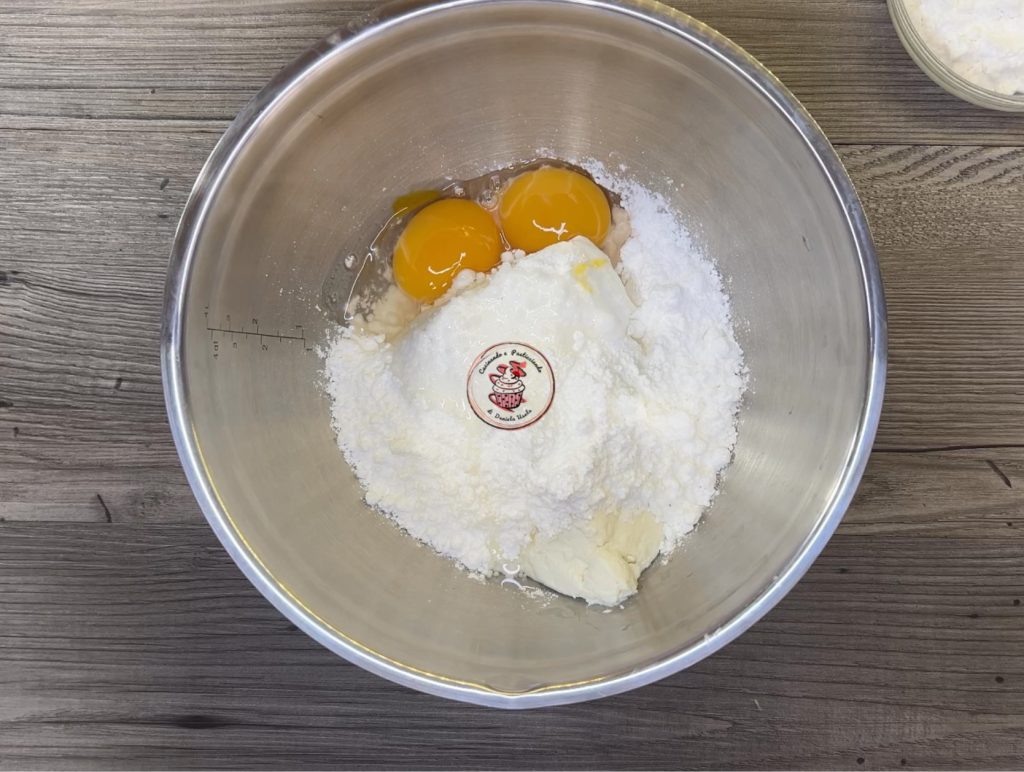 Pour the ricotta, eggs, and powdered sugar into a bowl.