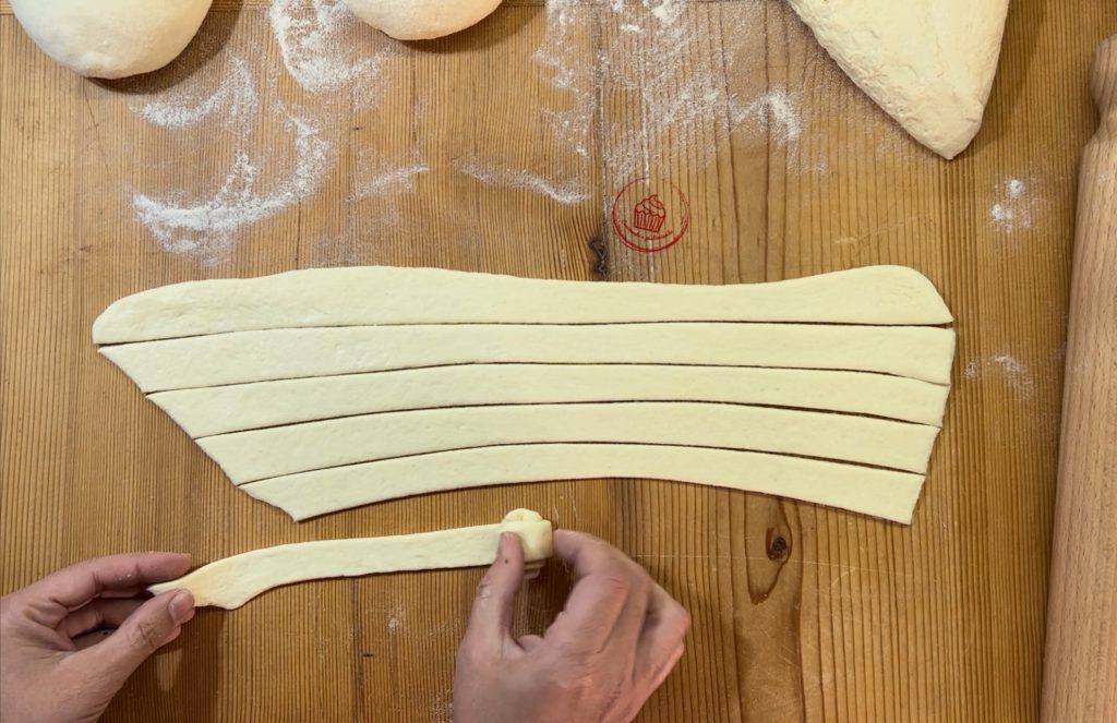 I rolled out the swirls part with the rolling pin and with the help of the pizza cutter I cut many strips.