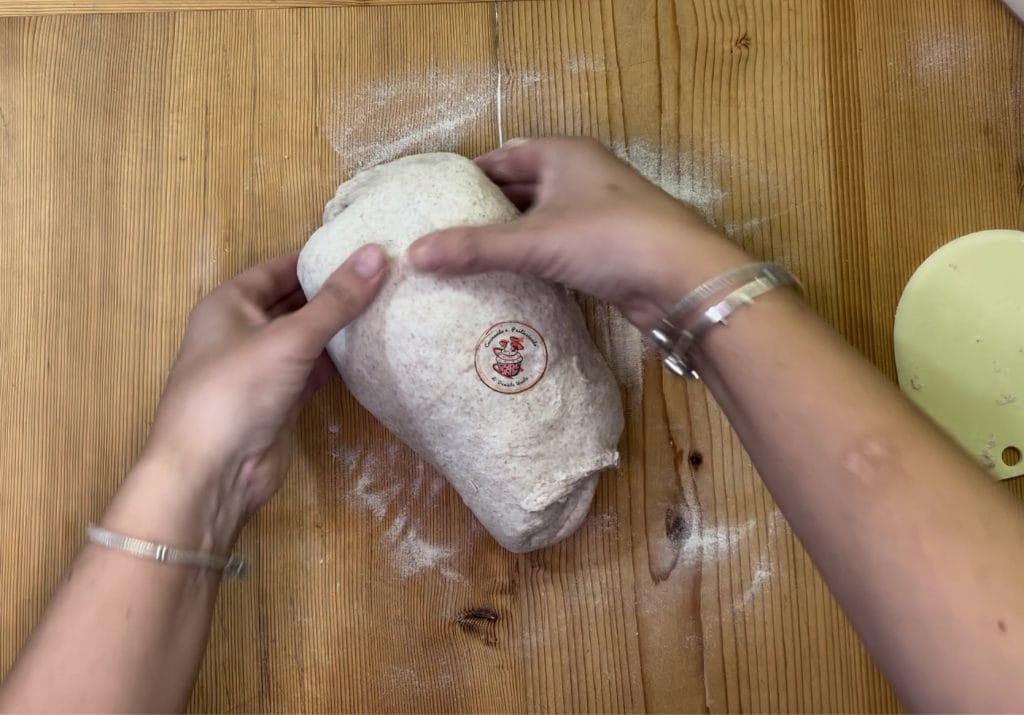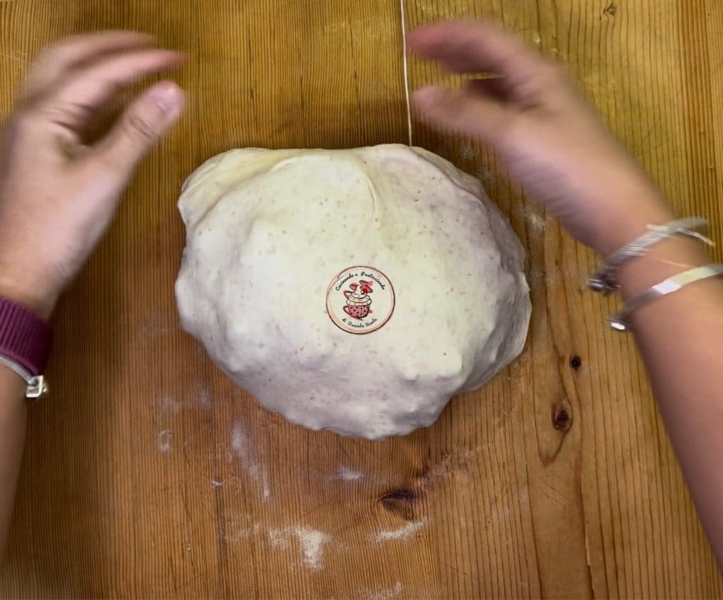 Transfer the dough to the work surface and make 3 rounds of folds at 30-minute intervals.