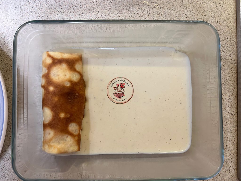 Place the filled crepes in a baking dish over a base of béchamel.