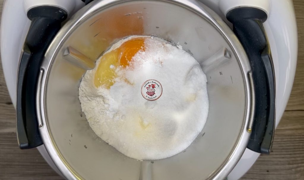 • In the Thermomix bowl, pour the flour, sugar, butter, egg, and baking powder and mix for 20 seconds at speed 5.