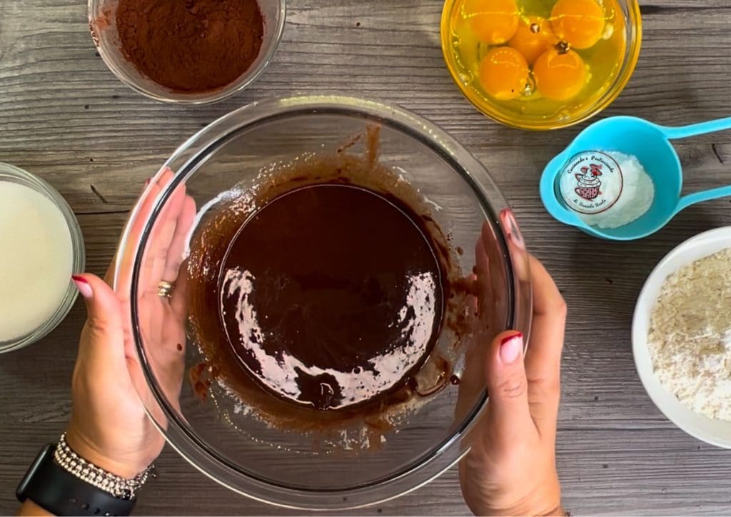 Do you know those desserts that give you satisfaction when you eat them? From the moment you are preparing them, you can’t wait to enjoy them? For me, the chocolate cake is like that. From the moment I decide to prepare it to when I’m taking it out of the oven, I can’t wait to taste it. Whether for breakfast, a snack, or after a meal, chocolate cake is always a good choice. Perfect for any occasion, moist and soft with hazelnut cream and crunch, it is truly irresistible. Try it if you also love chocolate cakes like I do.
