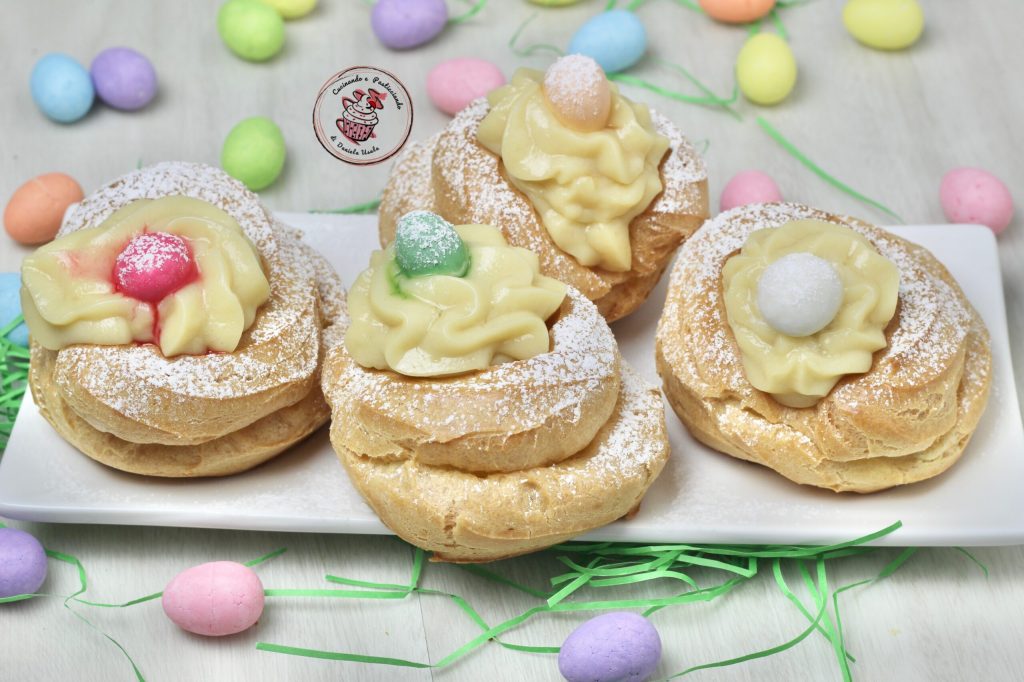 Today I made Zeppole di San Giuseppe. But not the classic ones with custard and cherries. Father’s Day is approaching, and since it’s the Easter season, I’ve decided to make an Easter version of Zeppole di San Giuseppe. Delicious, it’s the first time I’m making them, and I must say they are really easy to make. The base is Choux Pastry which you can find here on the blog. Perfect also for profiteroles and éclairs. You might also be interested in: