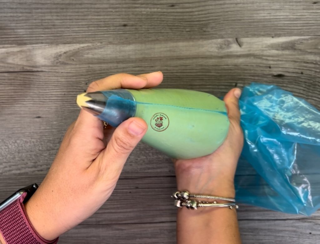 Transfer the mixture into the piping bag and preheat the oven to 392°F.