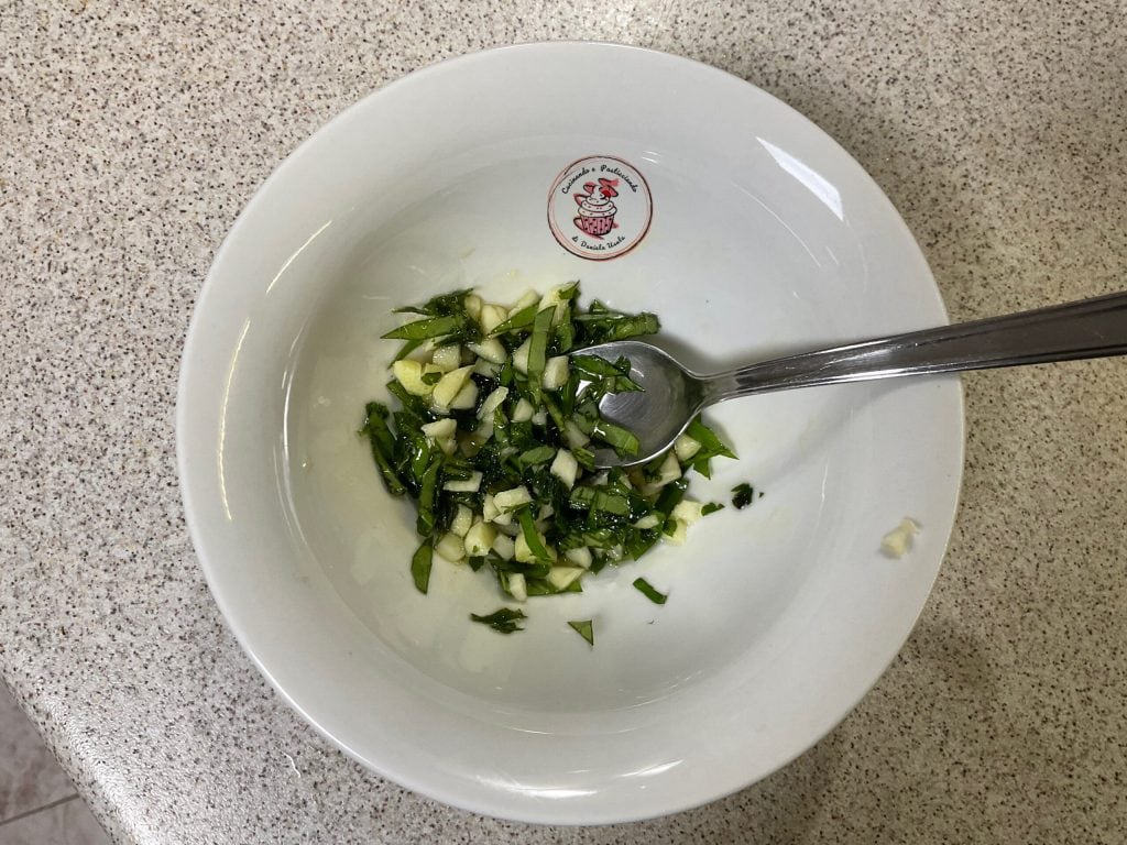 Separately, prepare a mince with parsley, garlic, and basil. Add the oil and adjust with salt if necessary.