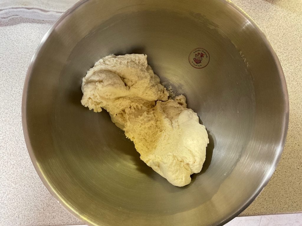 Finally, add the salt and the remaining water and knead for 5 minutes at spike speed.
