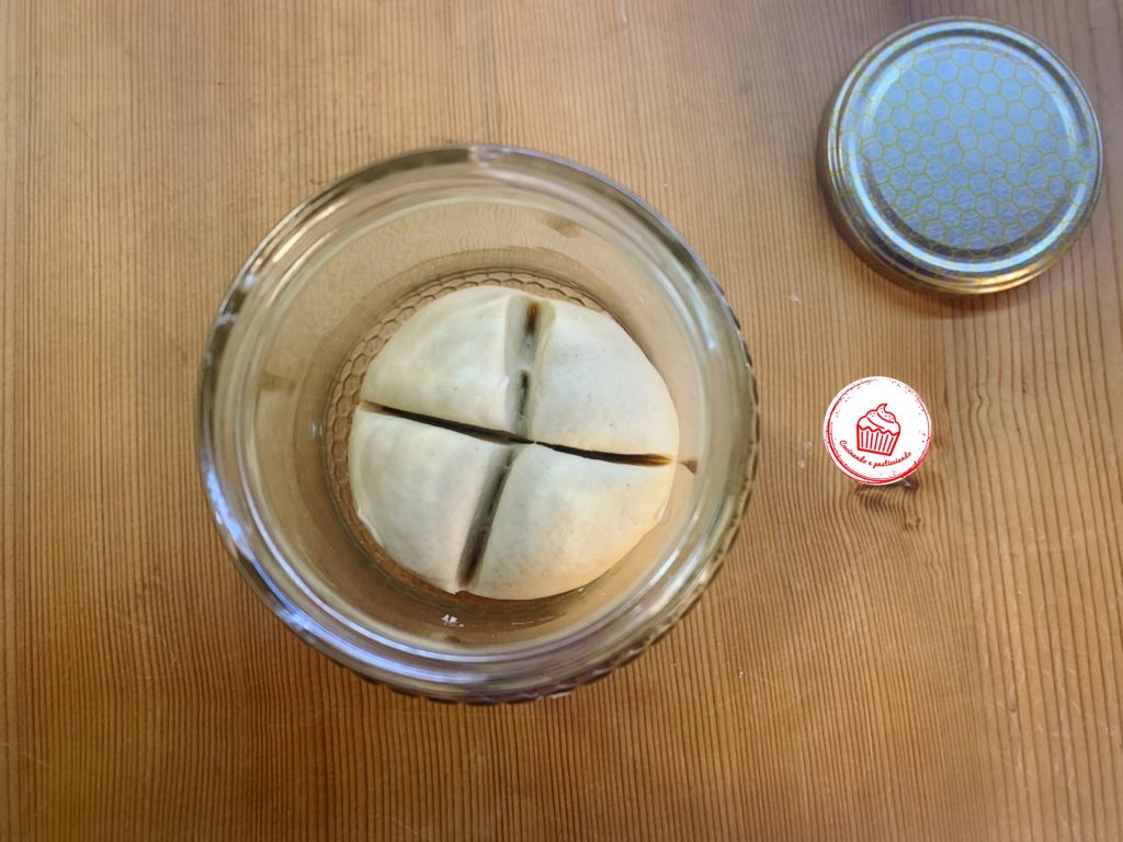 Proceed as before, put the dough in the jar, score it and cover it, place it in the kitchen and leave it aside for another 48 hours.